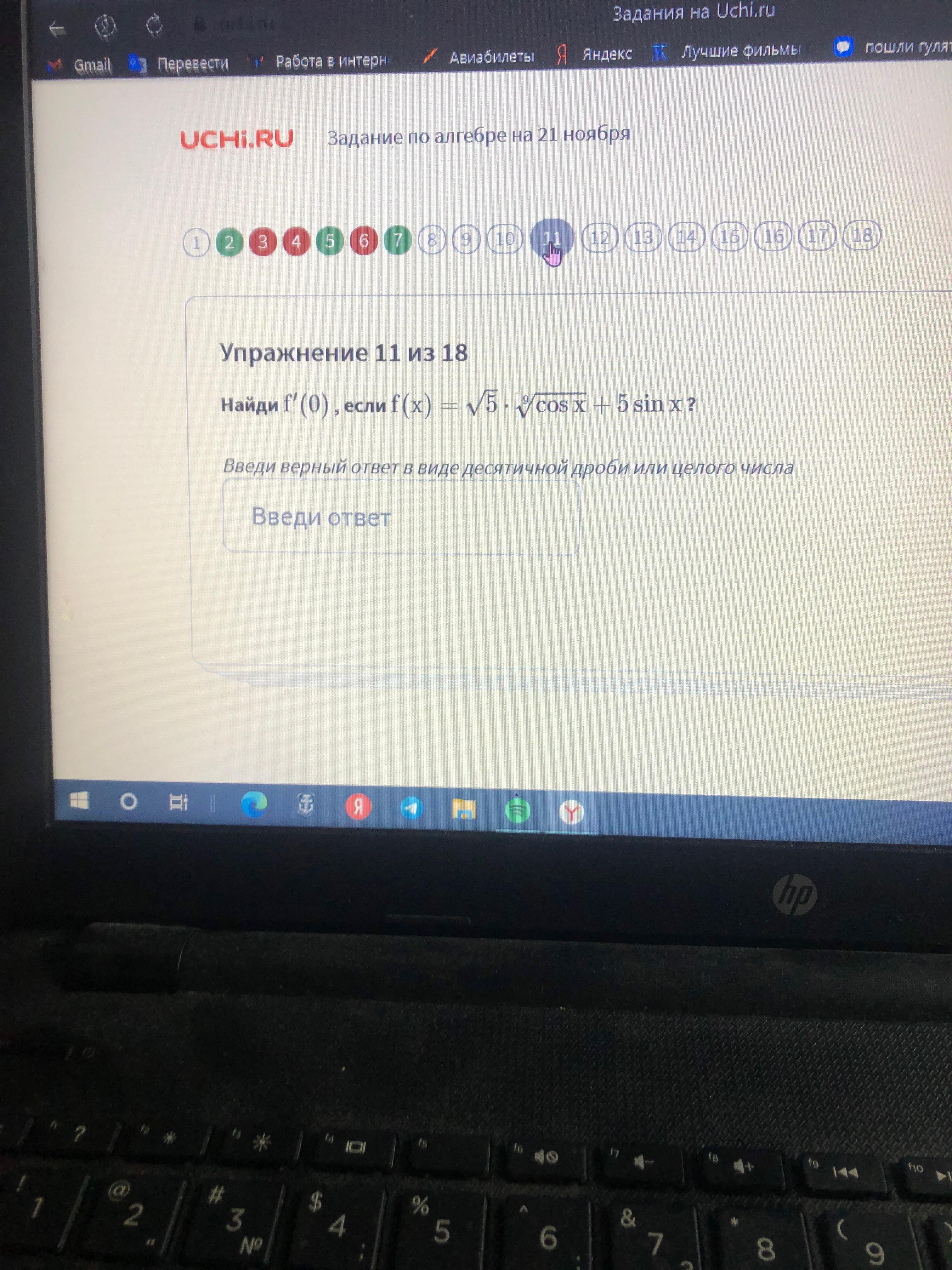 это 11/18, сначала находим «похідную», а потом подставляем ноль на место «х»