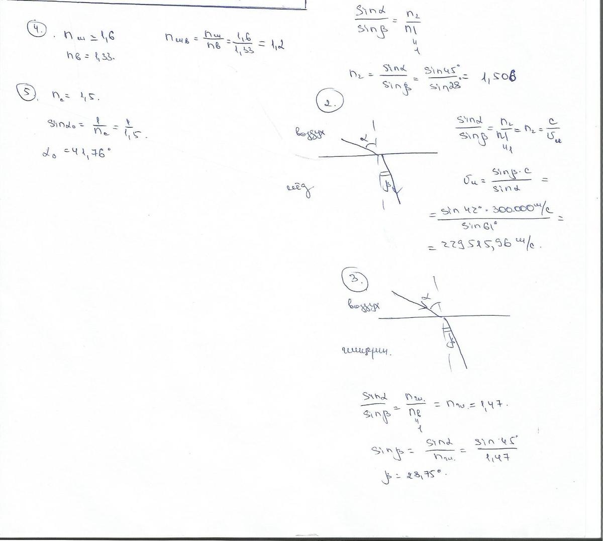 4. Абсолютный показатель преломления масла равен 1,6, а воды – 1,33. Определите показатель преломления масла относительно воды.