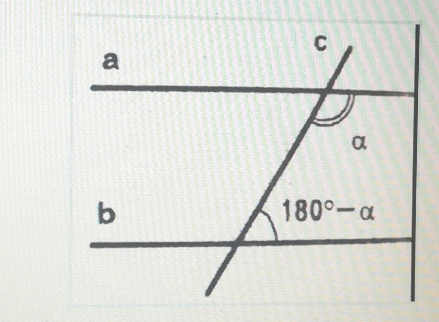 На малюнку позначено внутрішні односторонні кути. Якщо їх додати, то отримаємо: 180°-a + a = 180°