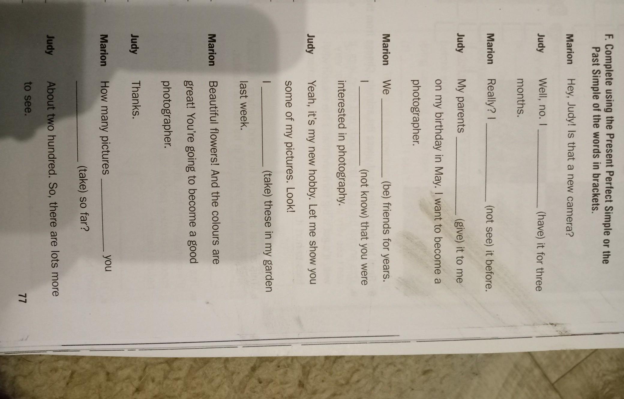 1 had 2 haven't 3 gave 4 were, didn't know 5 took 6 have you taken
