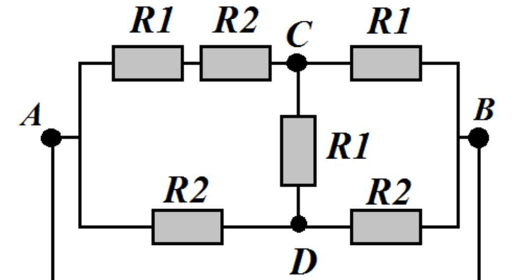 Как понять в какую сторону течет ток на мостике CD и как из этого определить сопротивление цепи?