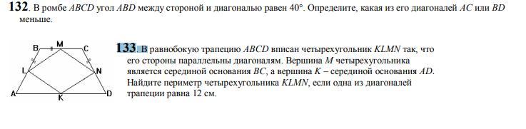 133) Если стороны четырёхугольника параллельны диагоналям, то в равнобокой трапеции они как средние линии треугольников равны половинам диагоналей.