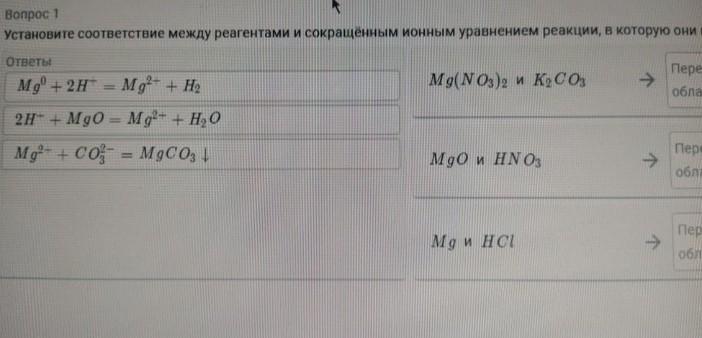 установите соответствие между реагентами и сокращённым ионным уравнением реакции в которую они вступают