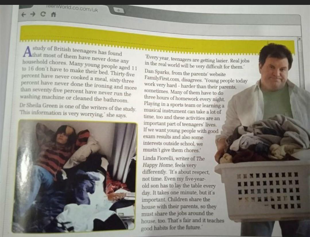 1. Which study has found that most of the teenagers have never done any household chores? (a British study)