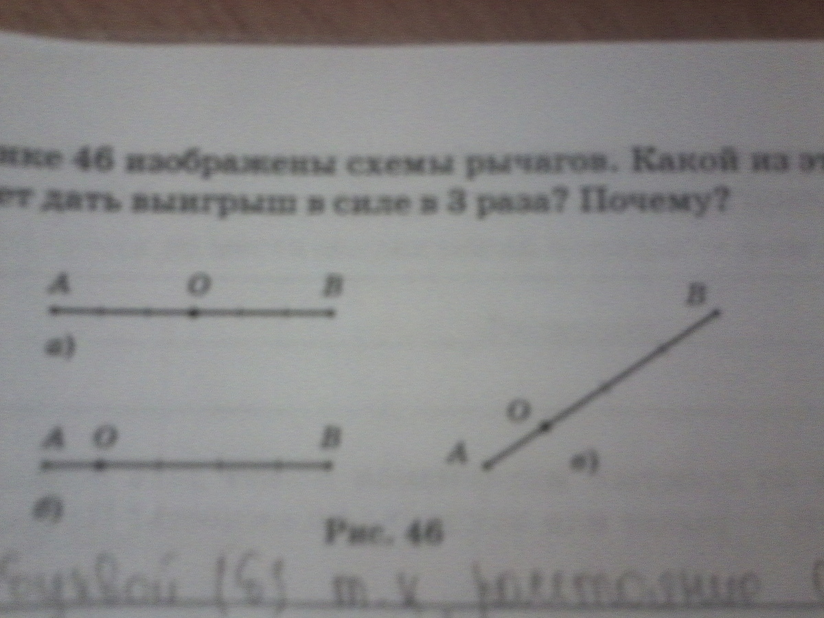 1) на рисунке 46 изображены схемы рычагов . какой из этих рычагов может дать выигрыш в силе в 3 раза ? Почему ?