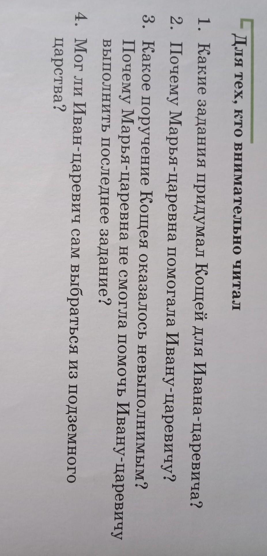 3. Какое поручение Кощея оказалось невыполнимым? Почему Марья-царевна не смогла помочь Ивану-царевичу выполнить последнее задание?