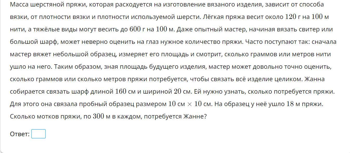 5) 576:300=1,92≈2 мотка пряжи потребуется