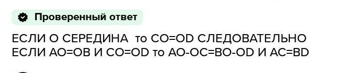 Отрезки АО и ВО, равны, точка О середина отрезка СD. Докажите что АС =ВD