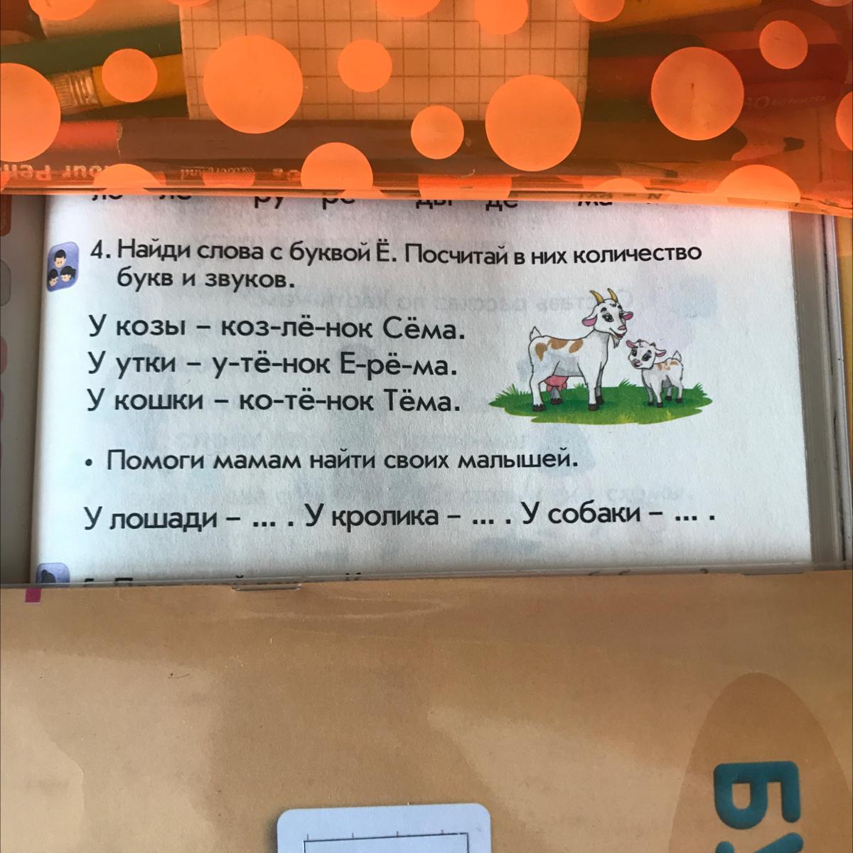 4. Найди слова с буквой Ё. Посчитай в них количество