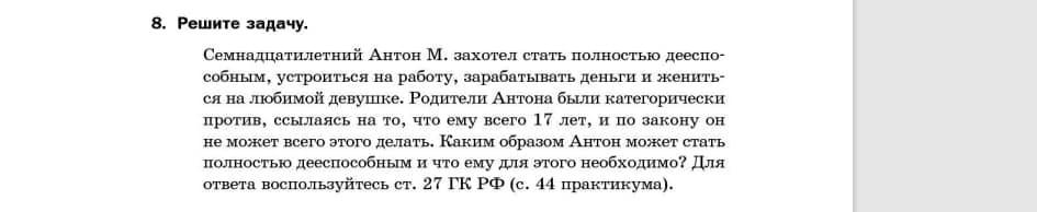 1. Несовершеннолетний, достигший шестнадцати лет, может быть объявлен полностью дееспособным, если он работает по трудовому договору, в том числе по контракту, или с согласия родителей, усыновителей или попечителя занимается предпринимательской деятельностью.
