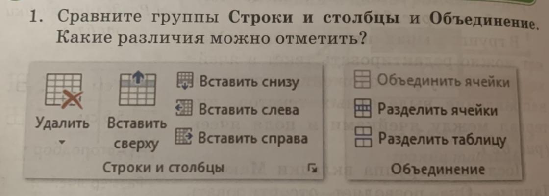 Стр 78, 7 класс Сравните группы строки и столбцы и объединение какие различия можно отметить?