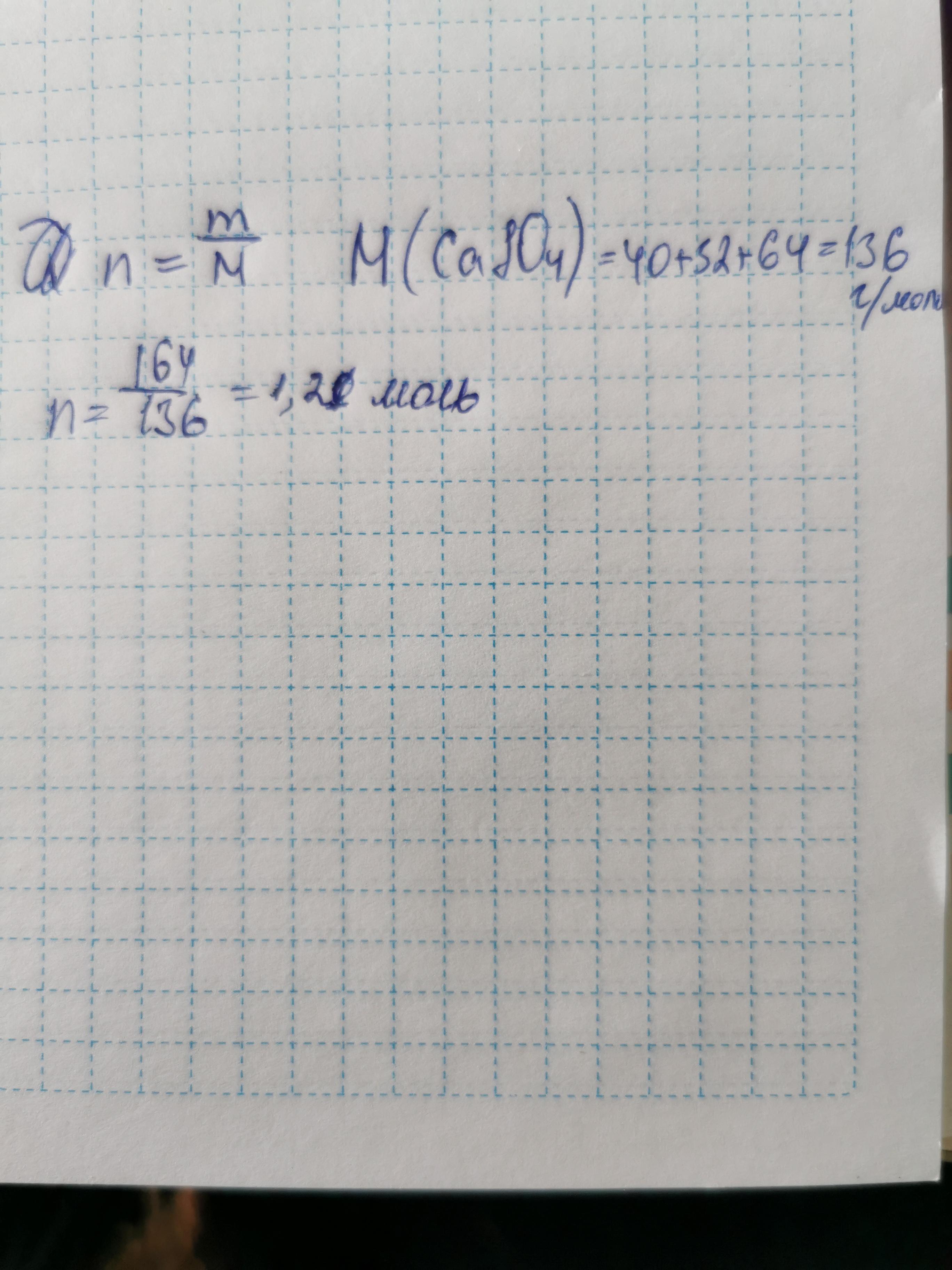 Определи химическое количество сульфата кальция CaSO4, масса которого равна 164 г.