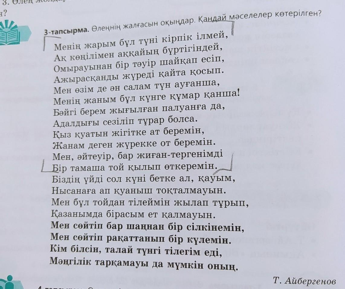 4-тапсырма. Өлеңдегі ақынның эмоционалды сөздерінен қандай көңіл күй сезіледі? Дәлелдер келтіріп талқылаңдар.