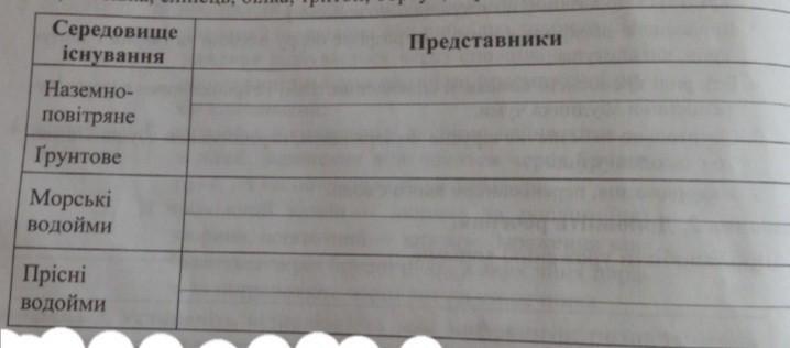Завдання 2. Розподіліть перелічених хордових тварин на групи залежи від середовища й існування та заповніть таблицю.
