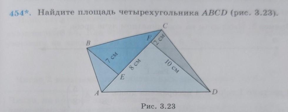 454*. Найдите площадь четырехугольника ABCD (рис. 3.23). C 2 см В 7 см 10 см 8 см E A D Рис. 3.23