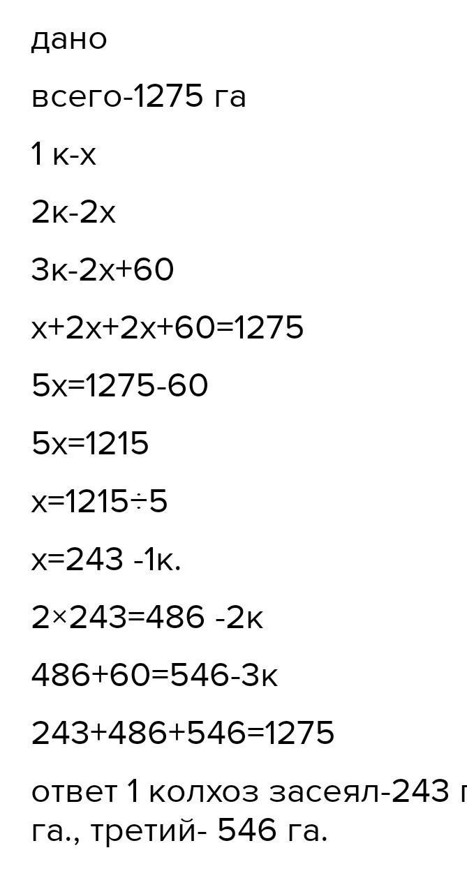 ответ 1 колхоз засеял-243 га, второй-486 га., третий- 546 га.