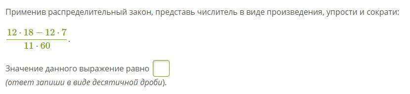 Применив распределительный закон, представь числитель в виде произведения, упрости и сократи: