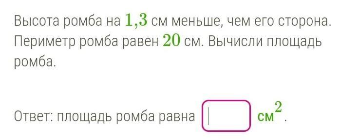Пошаговое объяснение: Сторона ромба = 20 / 4 = 5