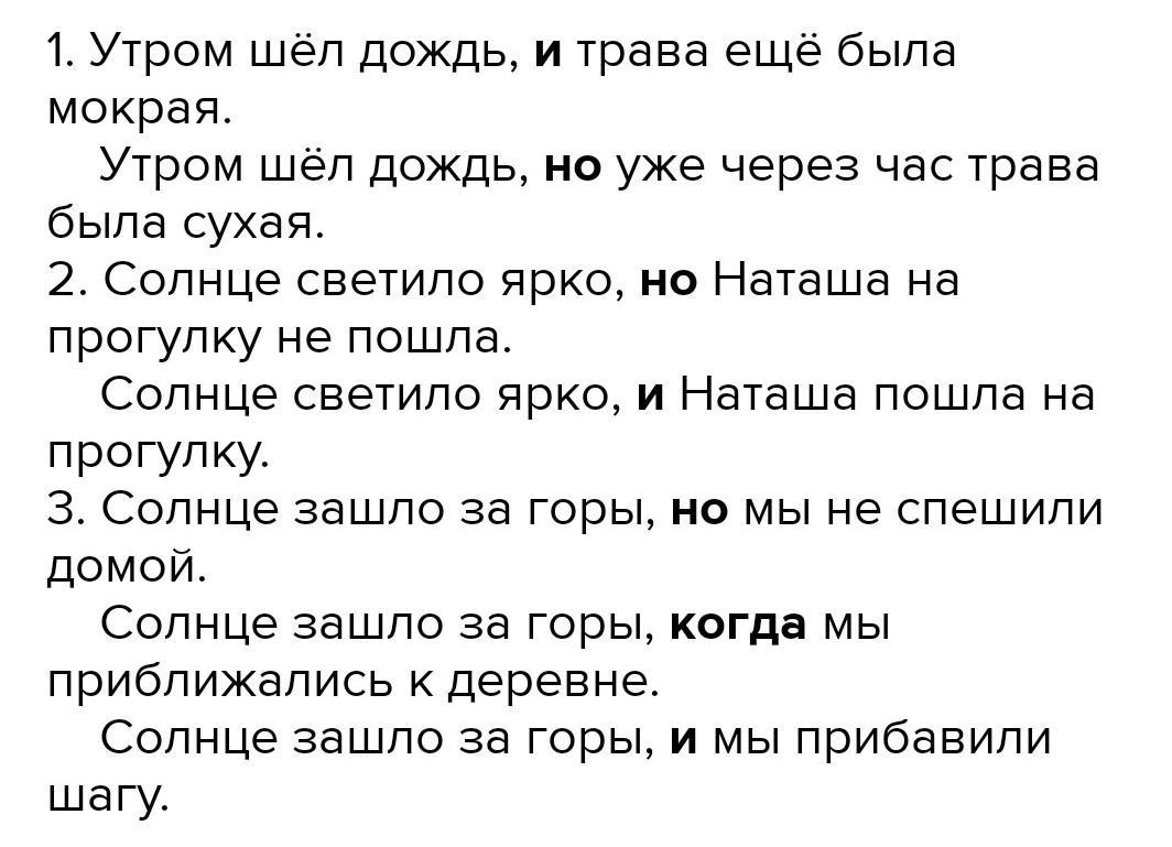 100. Составьте сложные предложения, употребляя подходящие по смыслу союзы и, а, но, когда. Образец: Утром шёл дождь. Трава ещё была мокрая. Уже через час трава была сухая. — Утром шёл дождь, и трава ещё была мокрая. Утром шёл дождь, но уже через час трава была сухая. 1) Наступила поздняя осень. Дни стояли ещё тёплые. Деревья уже сбро- сили листья. 2) Ярко светило солнце. День был Холодный. Ребята пошли ку- паться. 3) Солнце уже зашло. Дети поспешили вернуться в лагерь. Мы не спешили домой. Путники подошли к деревне.