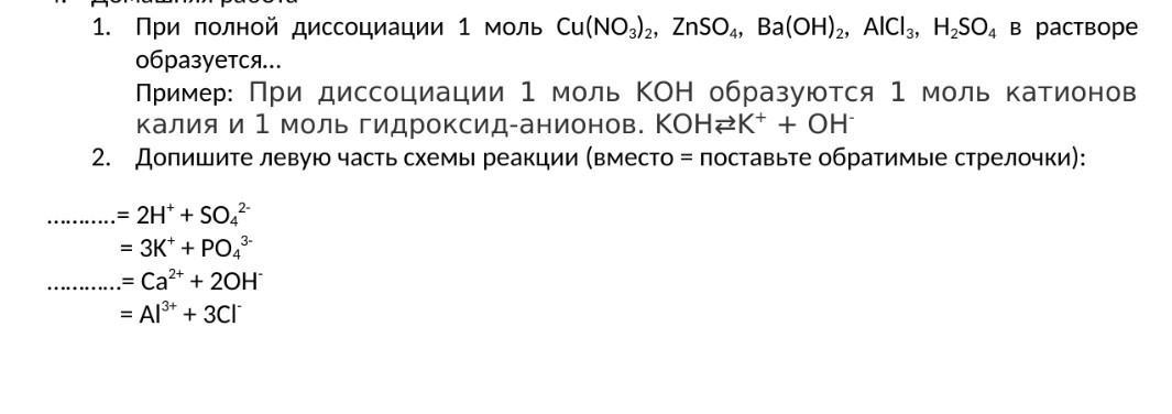 При диссоциации 1 моль H₂SO₄ образуется 2 моль катионов водорода и 1 моль сульфат-анионов H₂SO₄⇄2Н⁺+SO₄²⁻