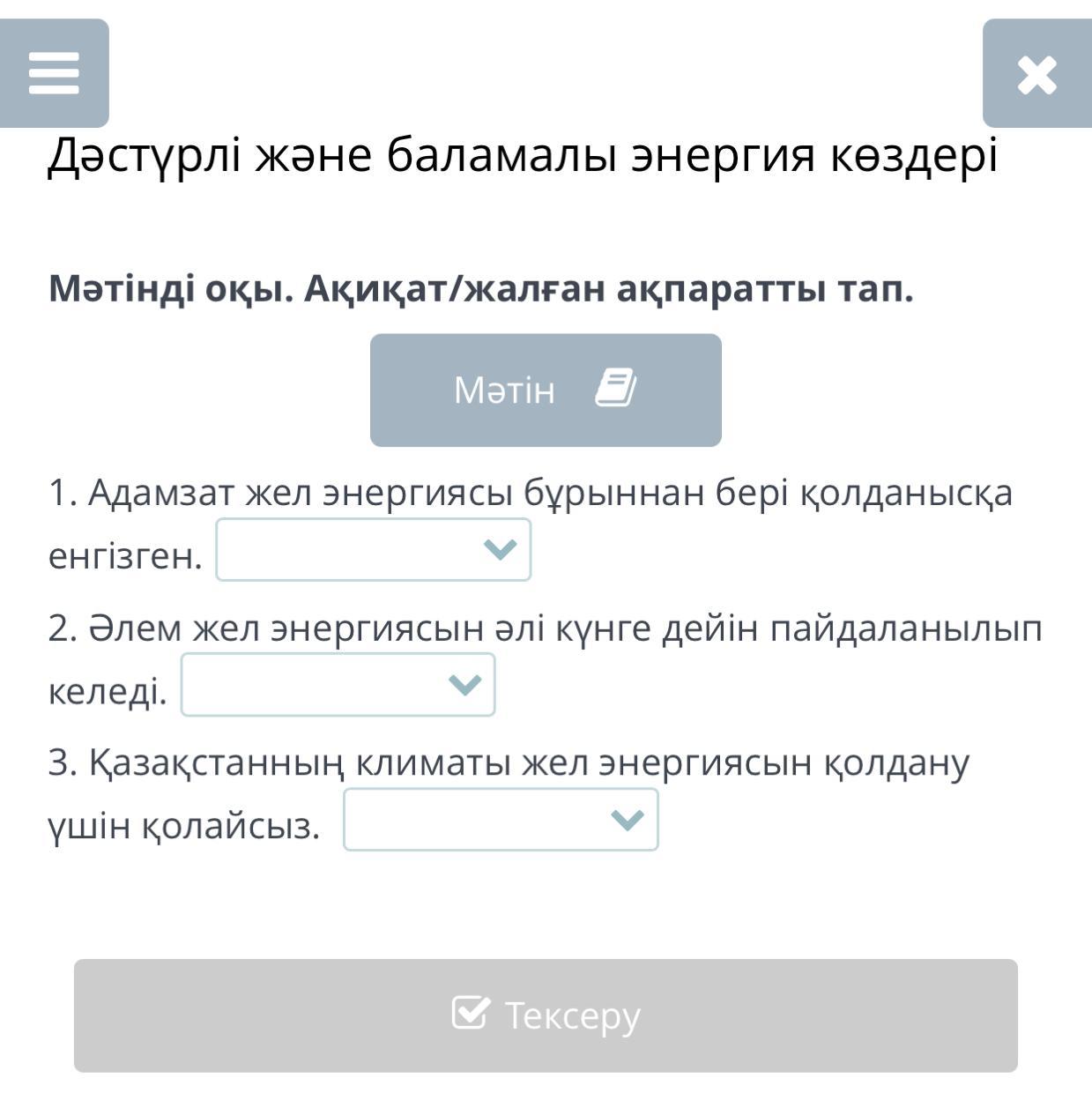 Мәтінді оқы. Ақиқат/жалған ақпаратты тап.