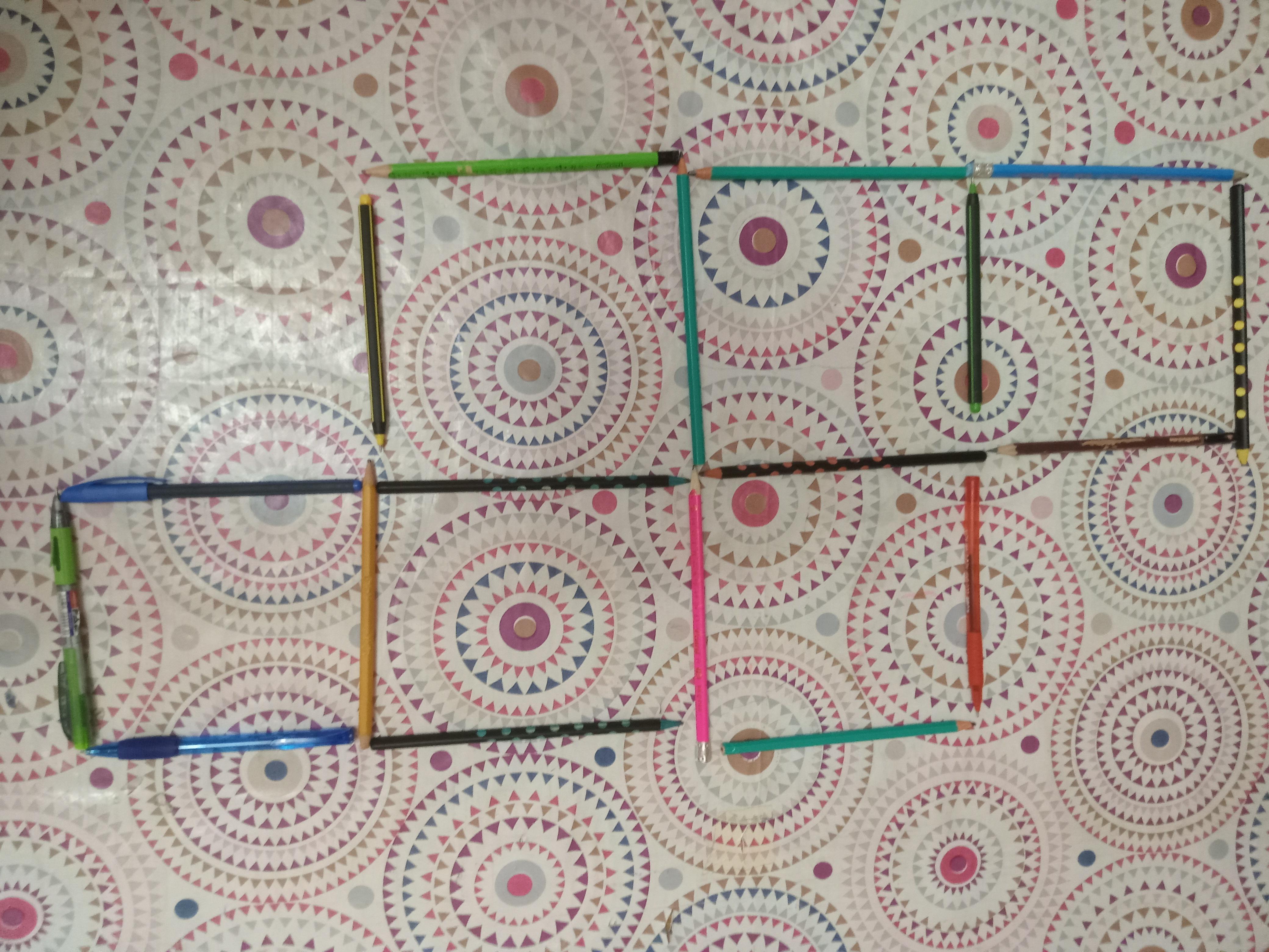 У меня есть 6 квадратов нужно убрать 3 карандаша чтобы получилось 4 квадрата