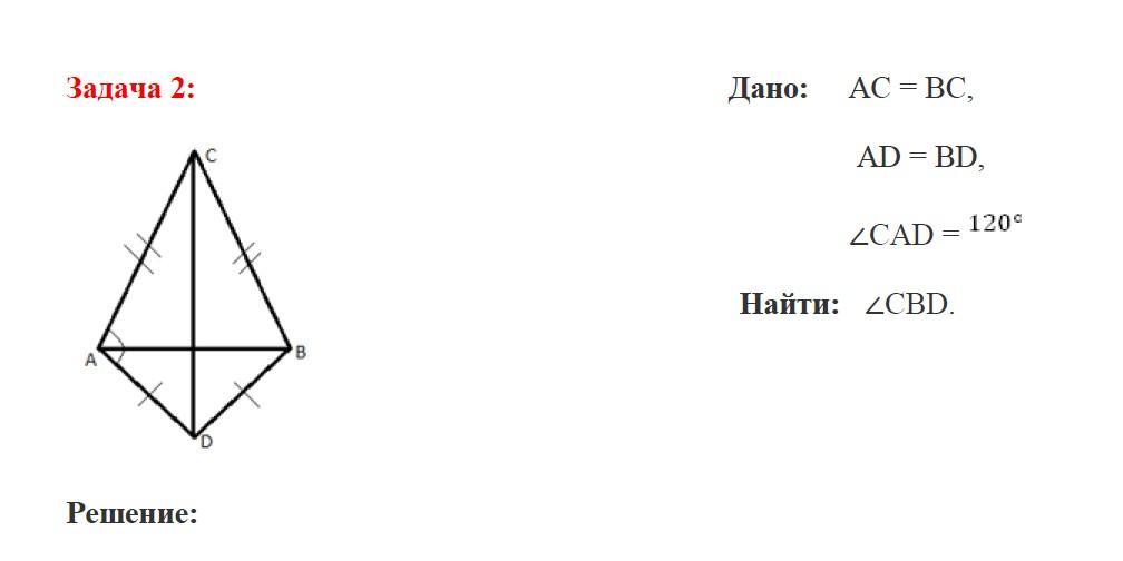 СД- общая сторона треугольников. Треугольники равны по третьему признаку (ССС). В равных треугольниках соответственные углы равны <САД=<СВД=120°