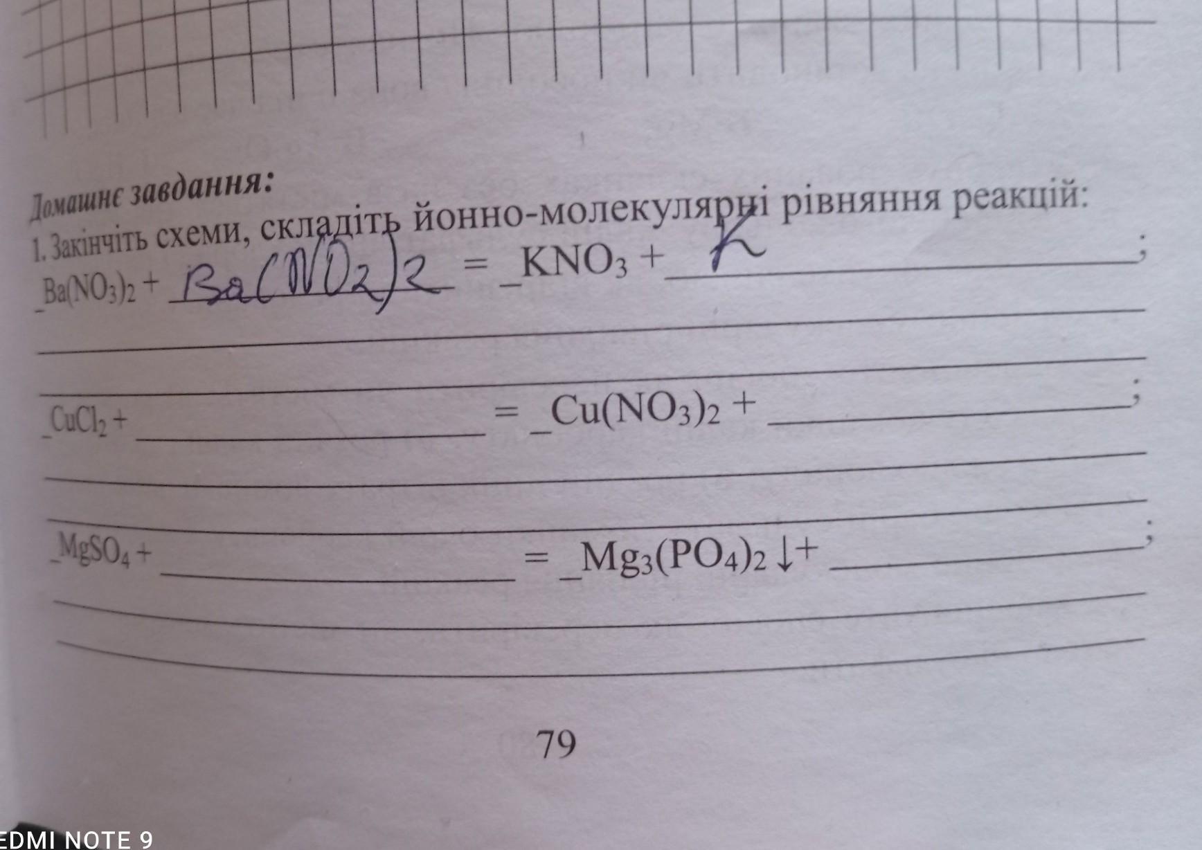 1. Ba(NO3)2 + K2SO4 => 2KNO3 + BaSO4⬇️