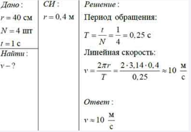 кто поможет решить? Колесо велосипедиста имеет радиус 40 см. С какой скоростьо едет велосипедист, если колесо делает 4 оборота в секунду? Чему равен период вращения колеса?