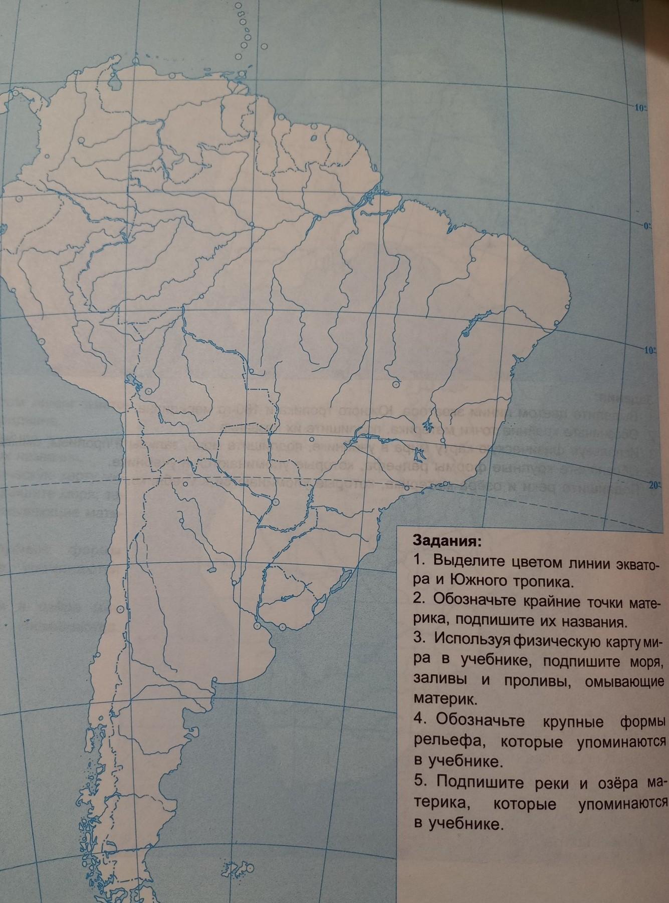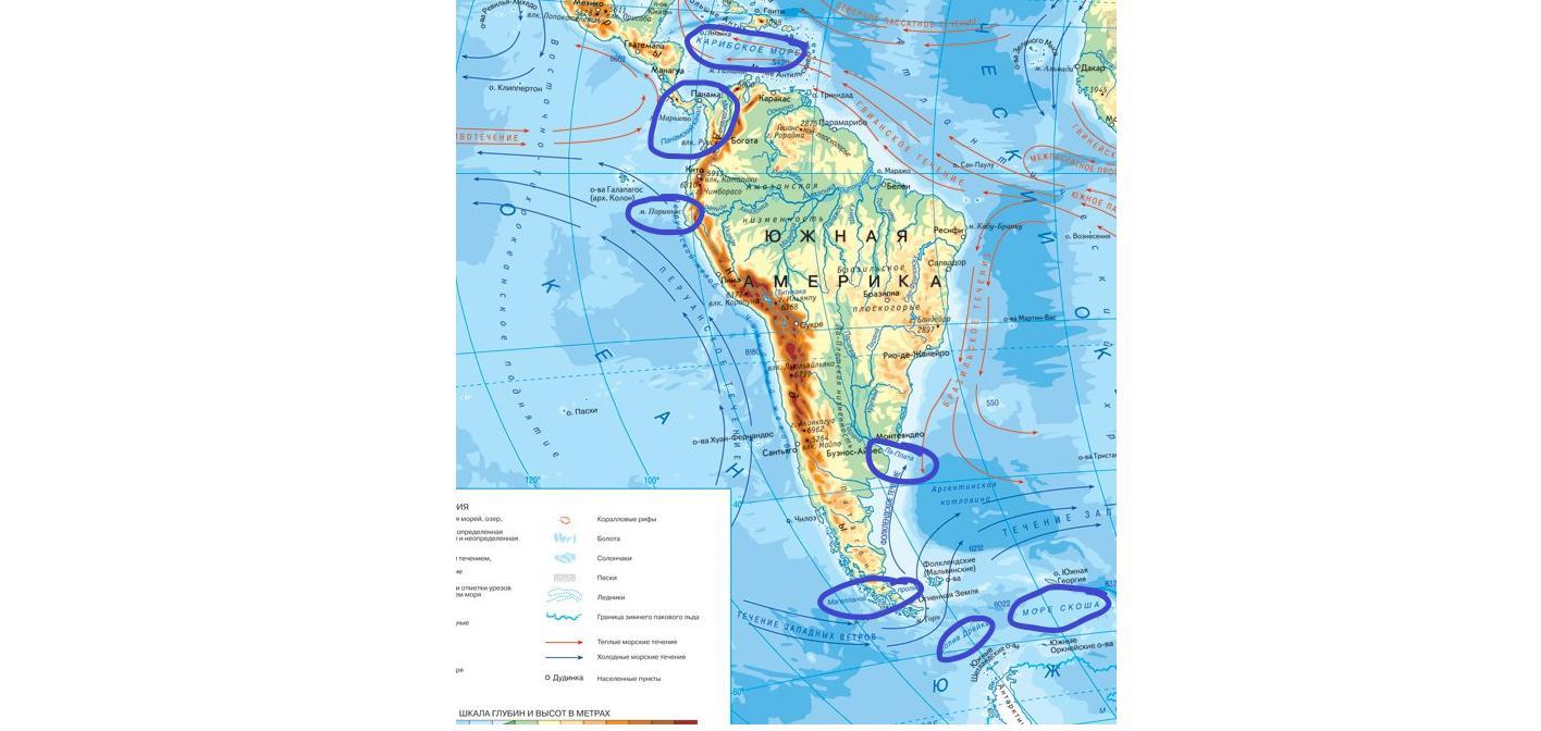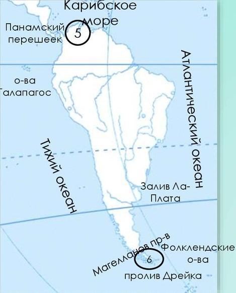 Южная Америка, используя физ.карту подписать все моря, заливы и проливы, омывающие материк(номер 3)