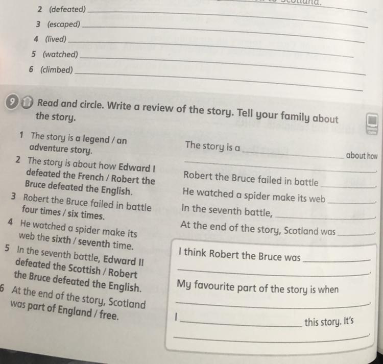 I think Robert the Bruce was a legend who freed (освободил) Scotland. My favourite part of the story is when a spider made its web the sixth time. I liked this story. It's really heroic / interesting story.
