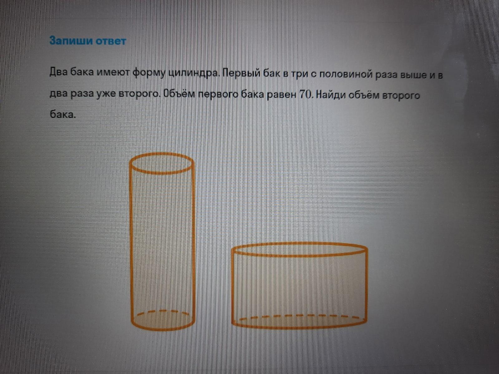 Объем цилиндра - V=Sосн*h; Sосн=πr²;