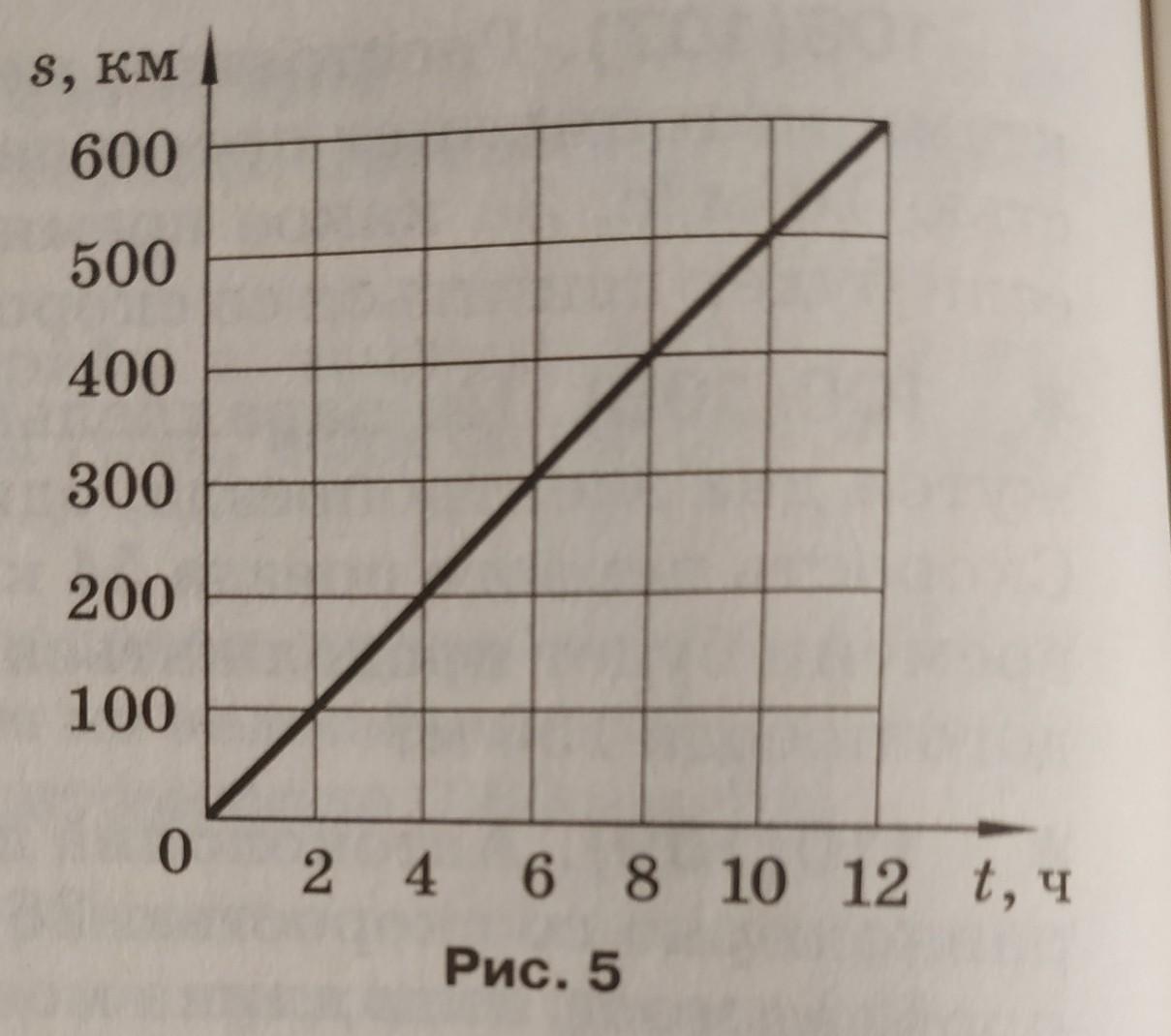 на рисунке 5 показан график зависимости пути равномерного движения тела от времени (s - ось пройденного пути, t - ось времени). По этому графику определите путь, пройденный телом за 8ч. Какова скорость тела?