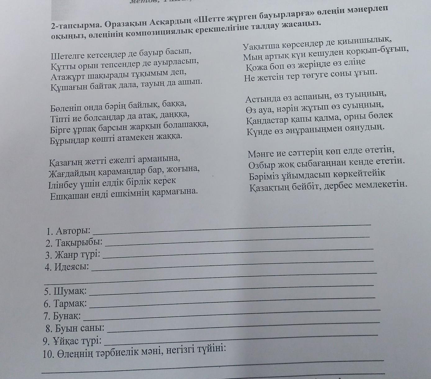 Жанр түрі: өлең