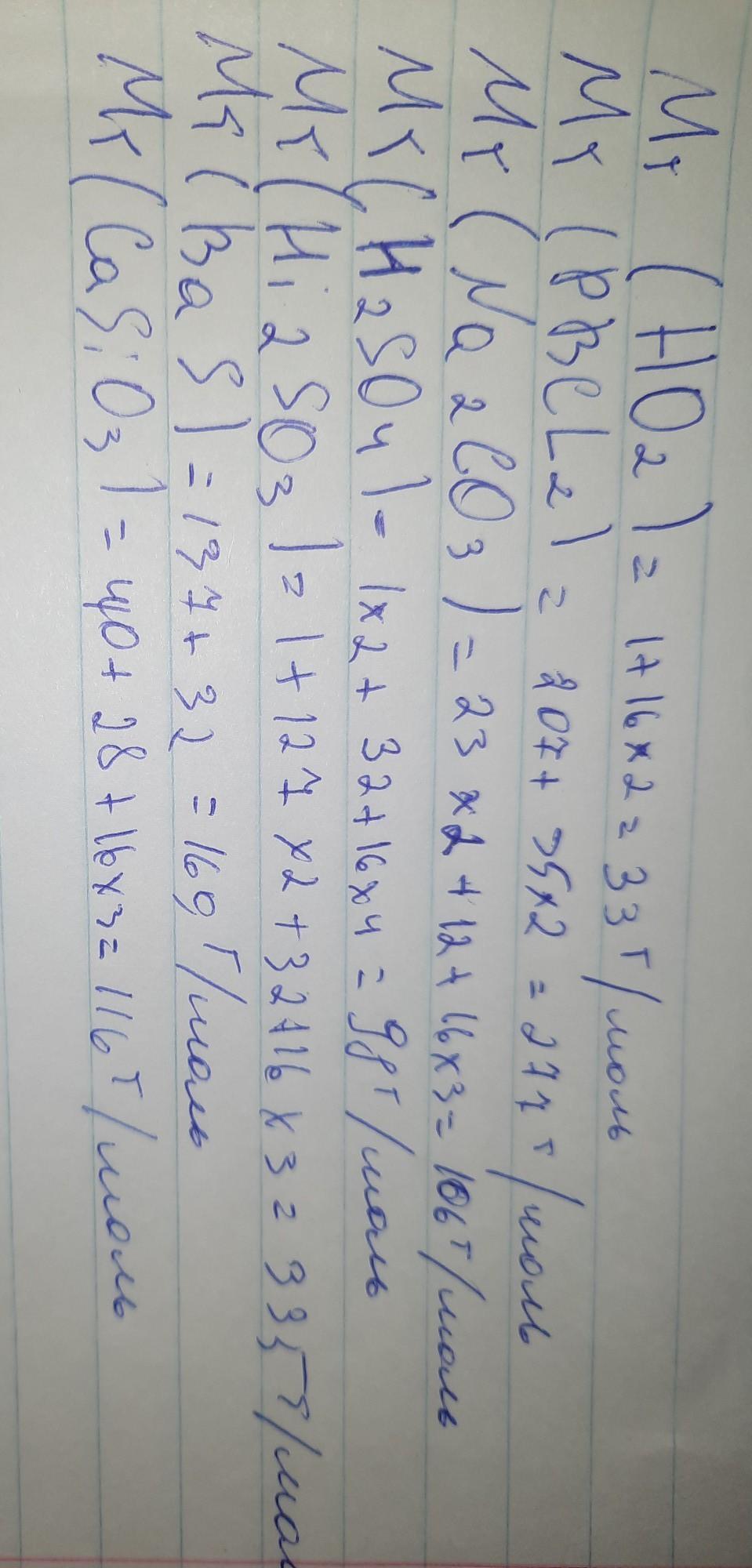 Визначте відносну малекулярну масу таких речовин: HO2 , PBCL2 , Na2CO3 , H2SO4 , Hi2SO3 , BaS , CaSiO3 . [короче, цыфры должны быть маленькие, можете несколько зделать, хоть 3-4, буду рад] даю 100 балов =)