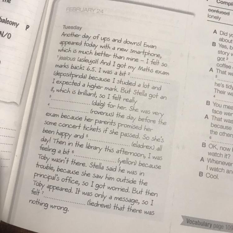 6. lonely (Тоби не было в библиотеке, поэтому мне было немного одиноко)