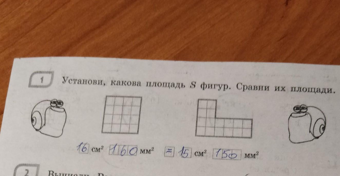 Ну смотри: в данной задачке один квадратик равен 1см² (это один сантиметр в квадрате). В первой фигуре всего 16 квадратиков, а значит 16см². Потом эти 16см² мы переводим в мм². 1см² =10мм². То есть 16см²=160см², потому что 16 мы умножаем на 10. Если 16 умножить на 10, то получится 160. Вообщем 16см²=160мм². То же самое делаем и со второй фигурой: считаем квадратики (сколько квадратов, столько и см²) и переводим эти см² в мм².