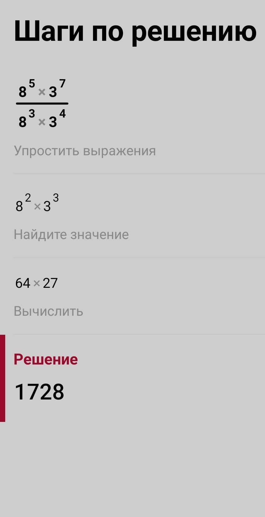 8⁵*3⁷/8³*3⁴ = 8²*3⁷/3⁴ = 8²*3³