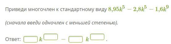 Ответ: Многочлен равен 6,15k5 - 1,6k9
