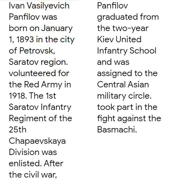 Написать про героя панфиловца Великой Отечественной войны на английском очень и очень кратко пожалуста!!!!!!!!!!!