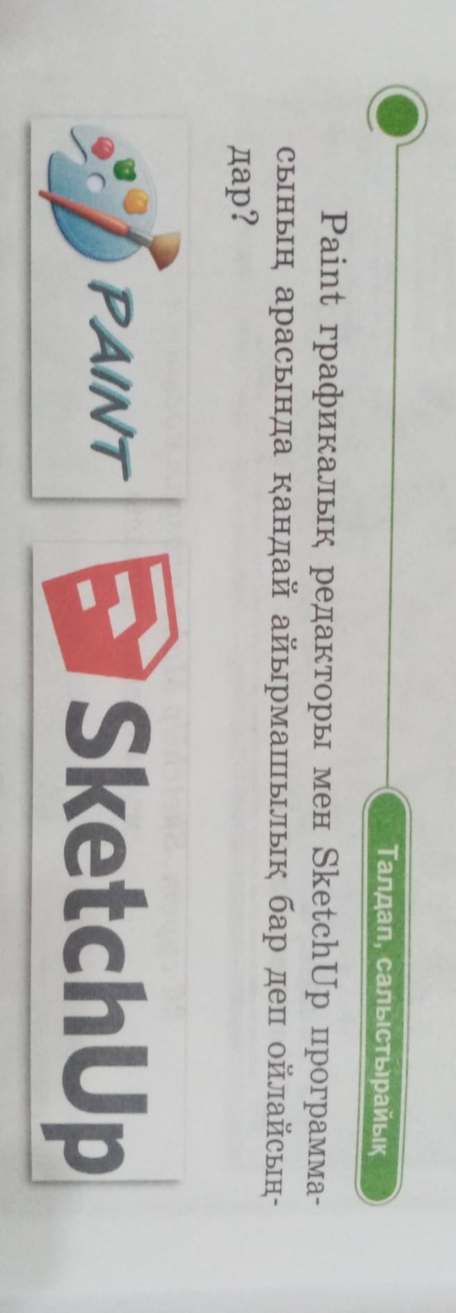 Paint графикалық редакторы мен SketchUp программа сының арасында қандай айырмашылық бар деп ойлайсың дар? Көмектесіндерші пжжжжж