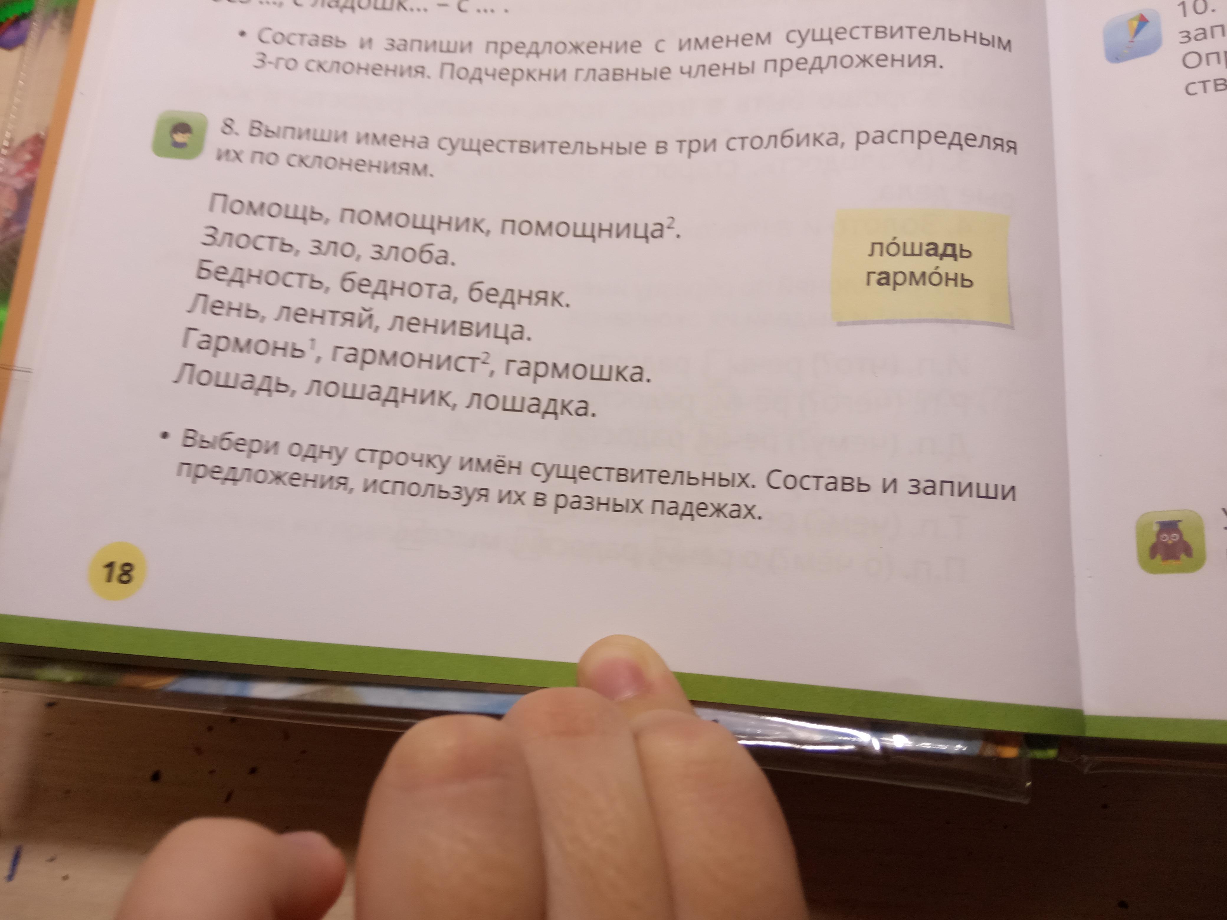 Помощь, лень, злость, гармонь, лошадь.