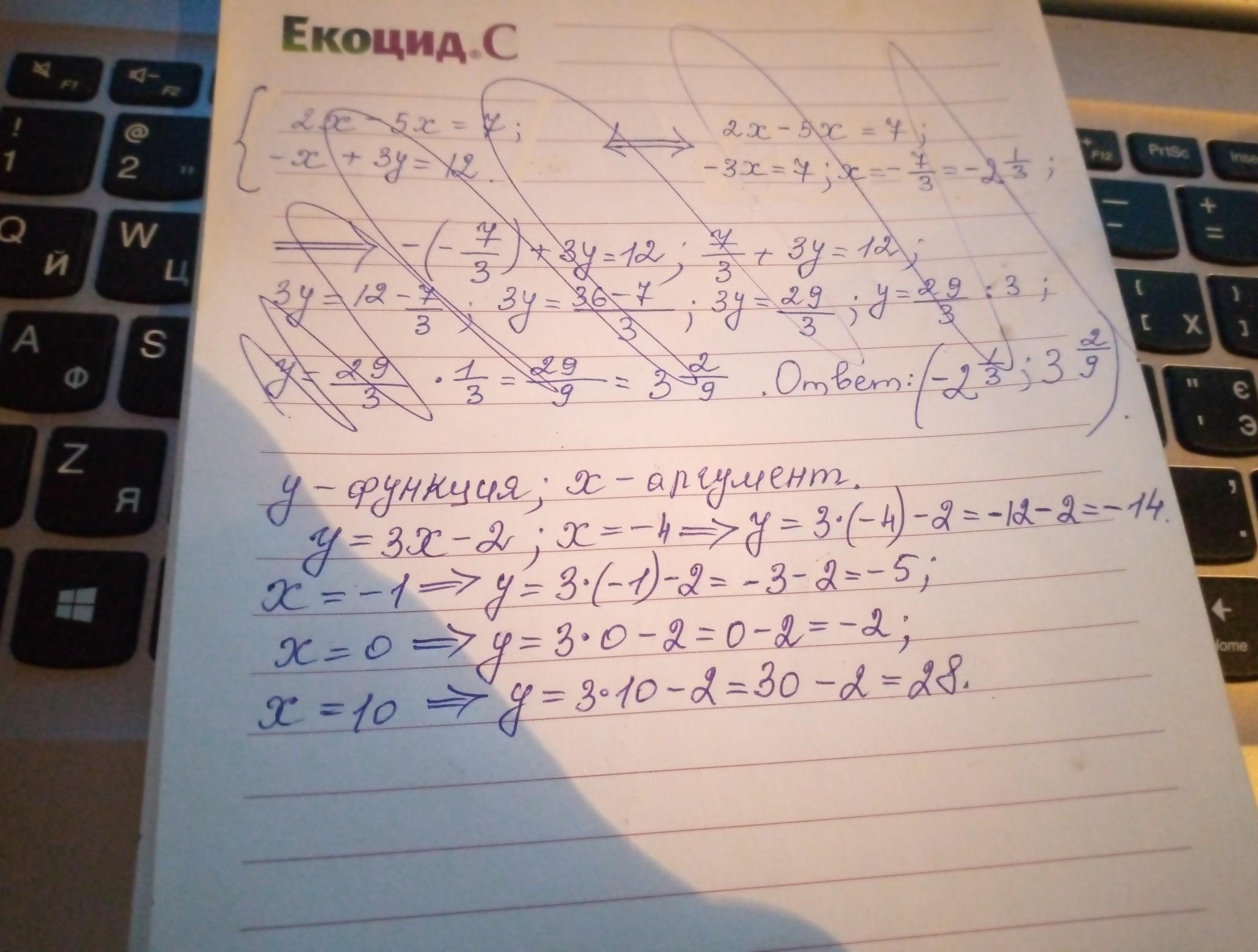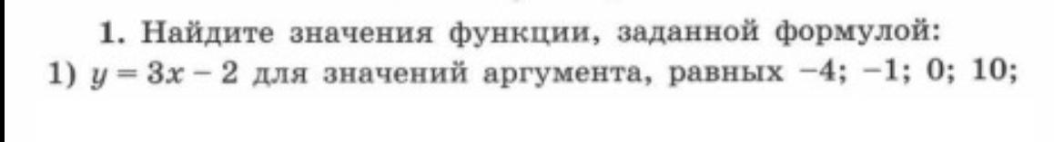 1) у = 3х - 2 для значений аргумента, равных -4; -1; 0; 10;