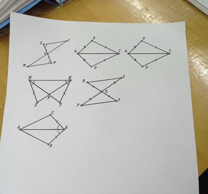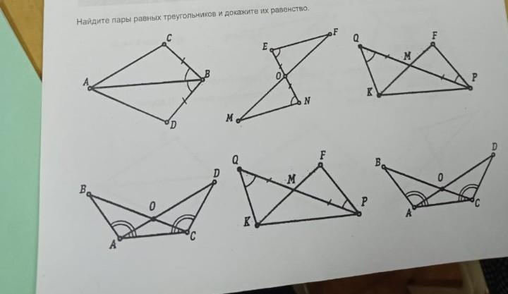 найдите пары равных треугольников и докажите их равенство и показать недостающие элементы.решите пожалуйста срочно