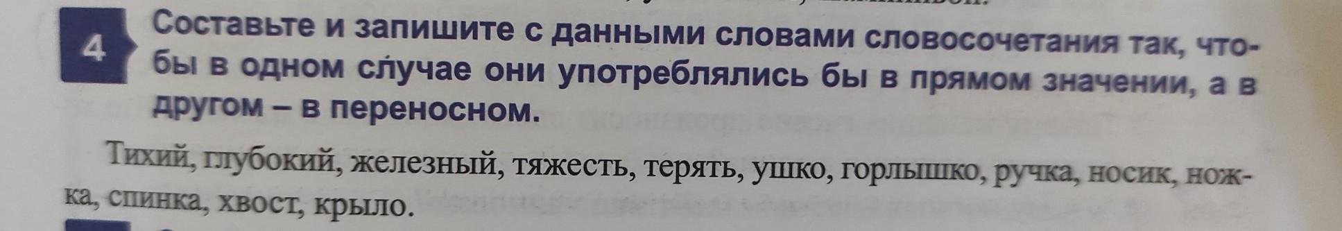 Составьте и запишите с данными словами словосочетания так, чтобы в одном случае они употреблялись бы в прямом значении, а в другом- в переносном.