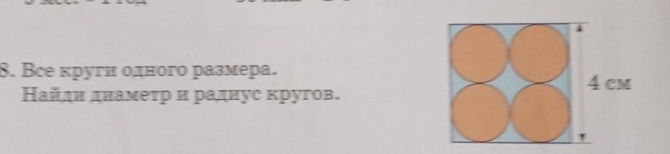диаметр 2см радиус 1. т.к по рисунку два круга это 4см