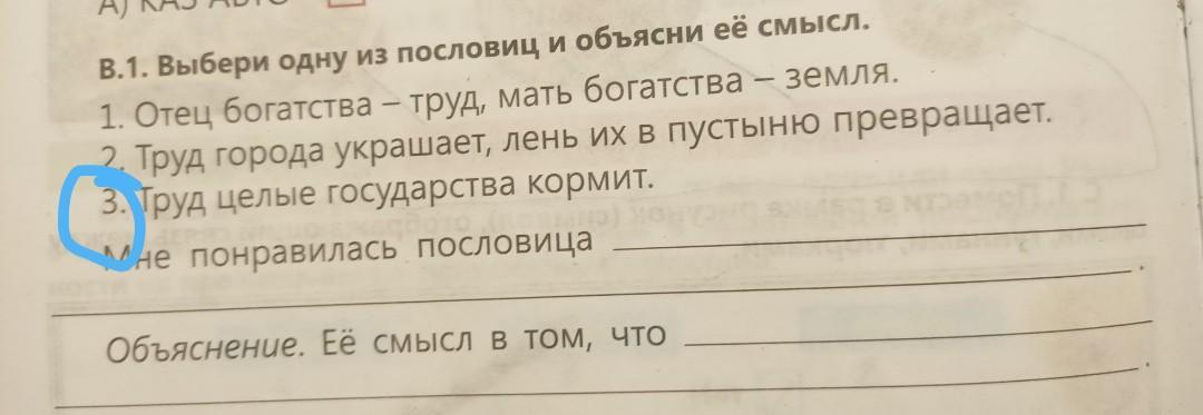 В.1. Выбери одну из пословиц и объясни её см