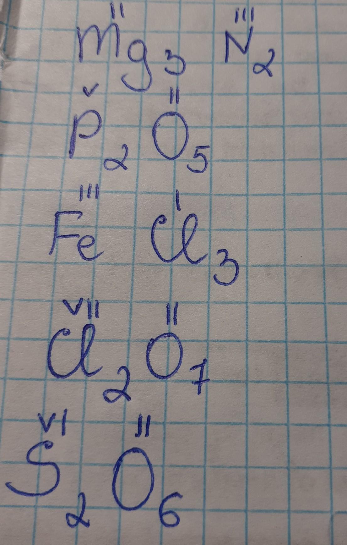 валентністю: Mg N(3) , P(5) O , Fe(3) Cl(1) , Cl(7) O , S(6) O ,помогите пожалуйста
