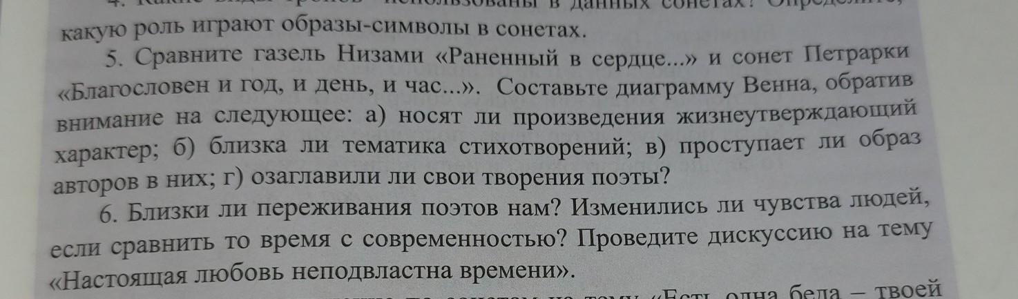 Газель Низами "Раненный в сердце" и сонет Петрарки "Благословен и год, и день, и час" похожи тем, что носят жизнеутверждающий характер, у них общая тематика - любовь, в них проступает образ авторов, оба автора не озаглавили свои стихотворения.