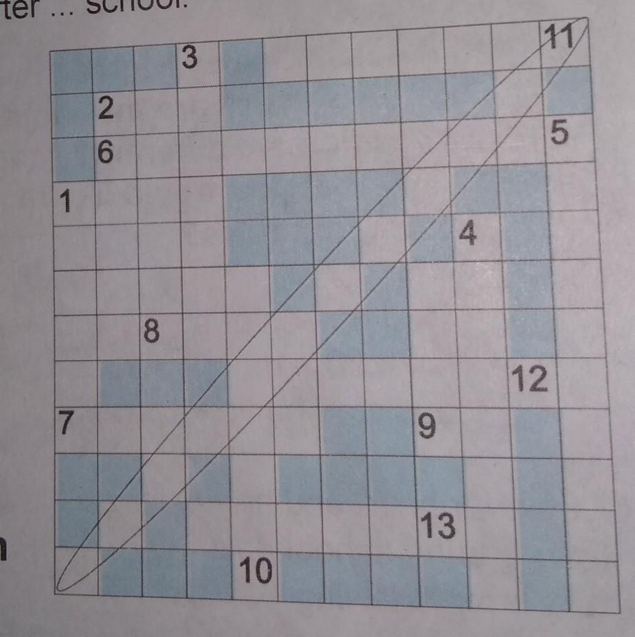 Copy the crossword and complete it. Then look at the diagonal mark and find the type of school.